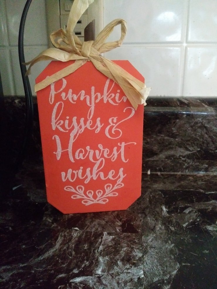 I have never decorated the kitchen for a holiday or season other than with hand towels. I just put in two signs to add some color in there. They are small enough to not look cluttered or be in the way.