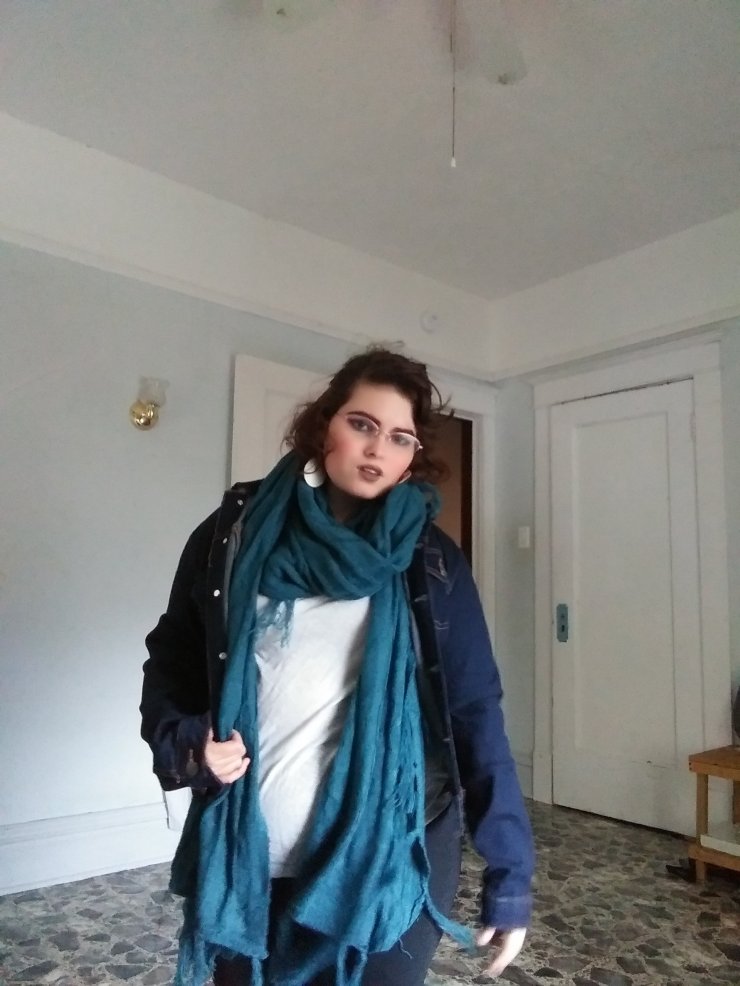 This scarf is from lularoe. It is so long and easy to wrap around your neck. I think it is fun being blue because it changes your outfit a lot.