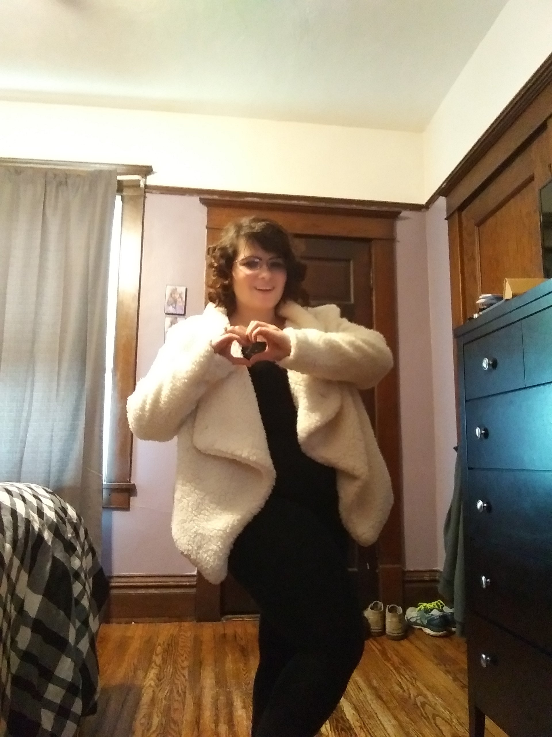 Red and black are both such classic colors to wear on Valentines day! This outfit is so great to be cute but comfy on Valentines day. The best part about wearing skirts and dresses, is that you don’t have to wear pants! The skirt is from Lularoe and the jacket and bodysuit are from groopdealz.
