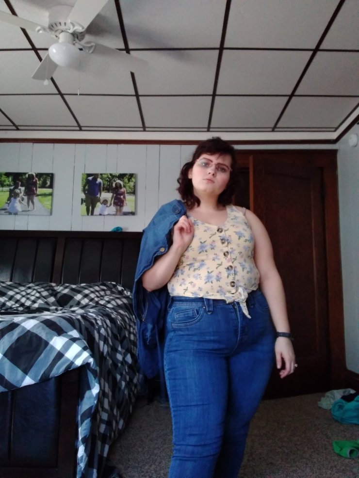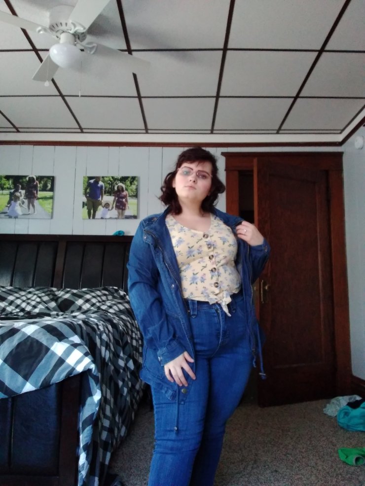 Denim on denim is a look. I love the yellow floral that separates the two. I just think this is a classic spring look. Of course I had to add another crop top. I don’t remember where the jacket is from. The top is American eagle and the jeans are seven7.