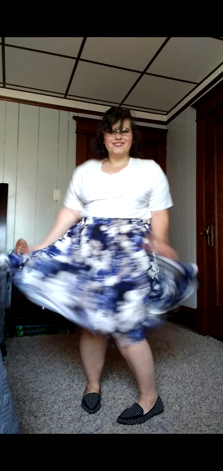 This is one of my favorite skirts. I feel so cute and girly in it. I just add a plain white tee to it and the look is completely. It is so easy to style.