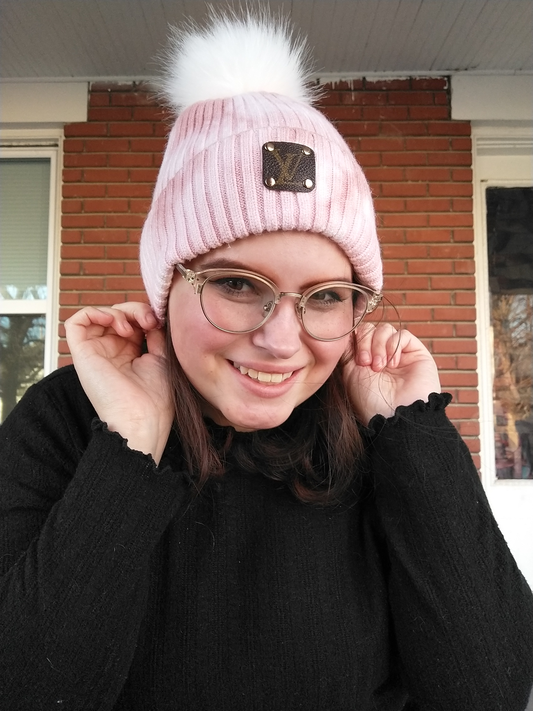 This one is a light pink tie dye beanie. I’m obsessed with how unique it is. It is so girly. I have so many dark coats for the winter. This will be a lovely pop of color.